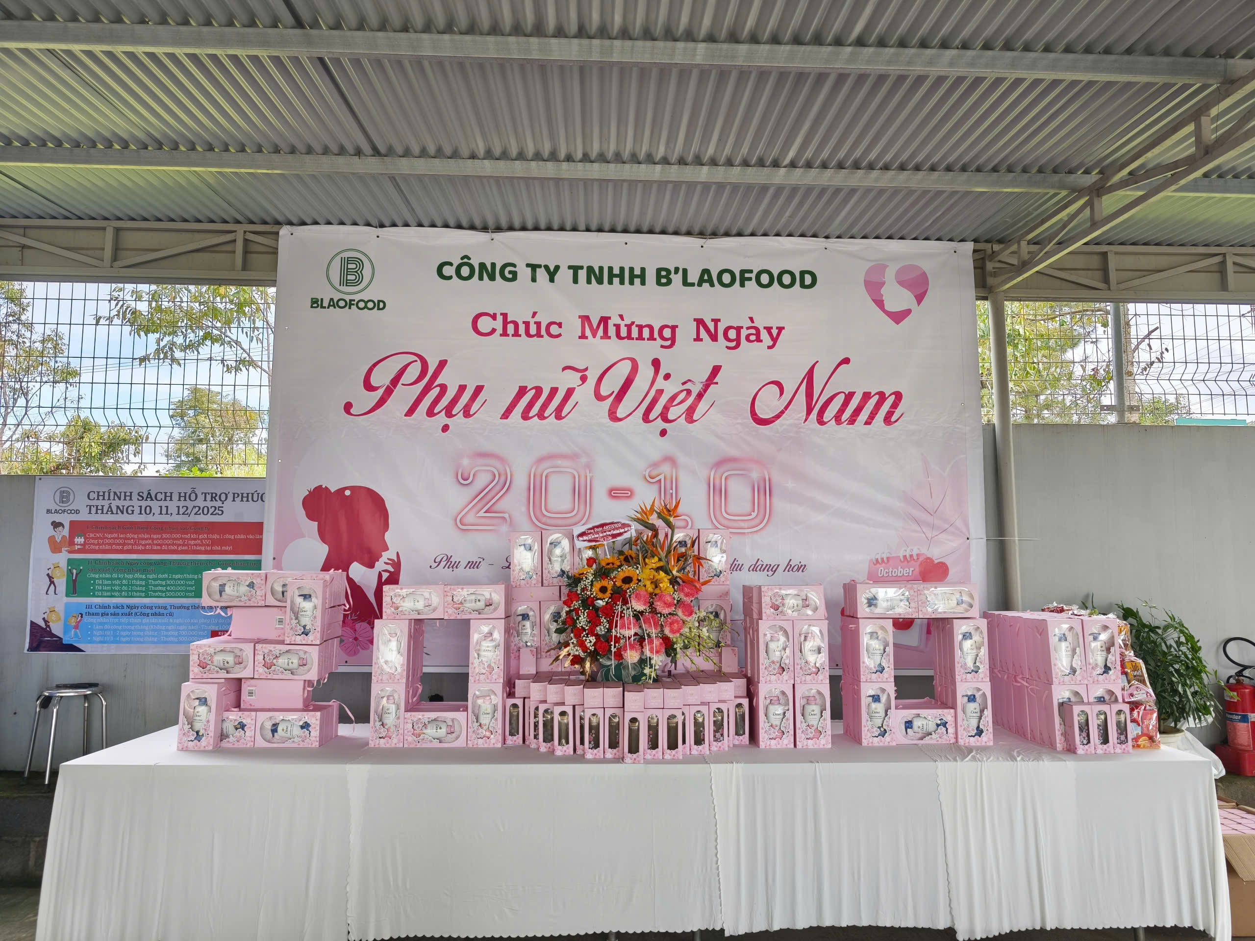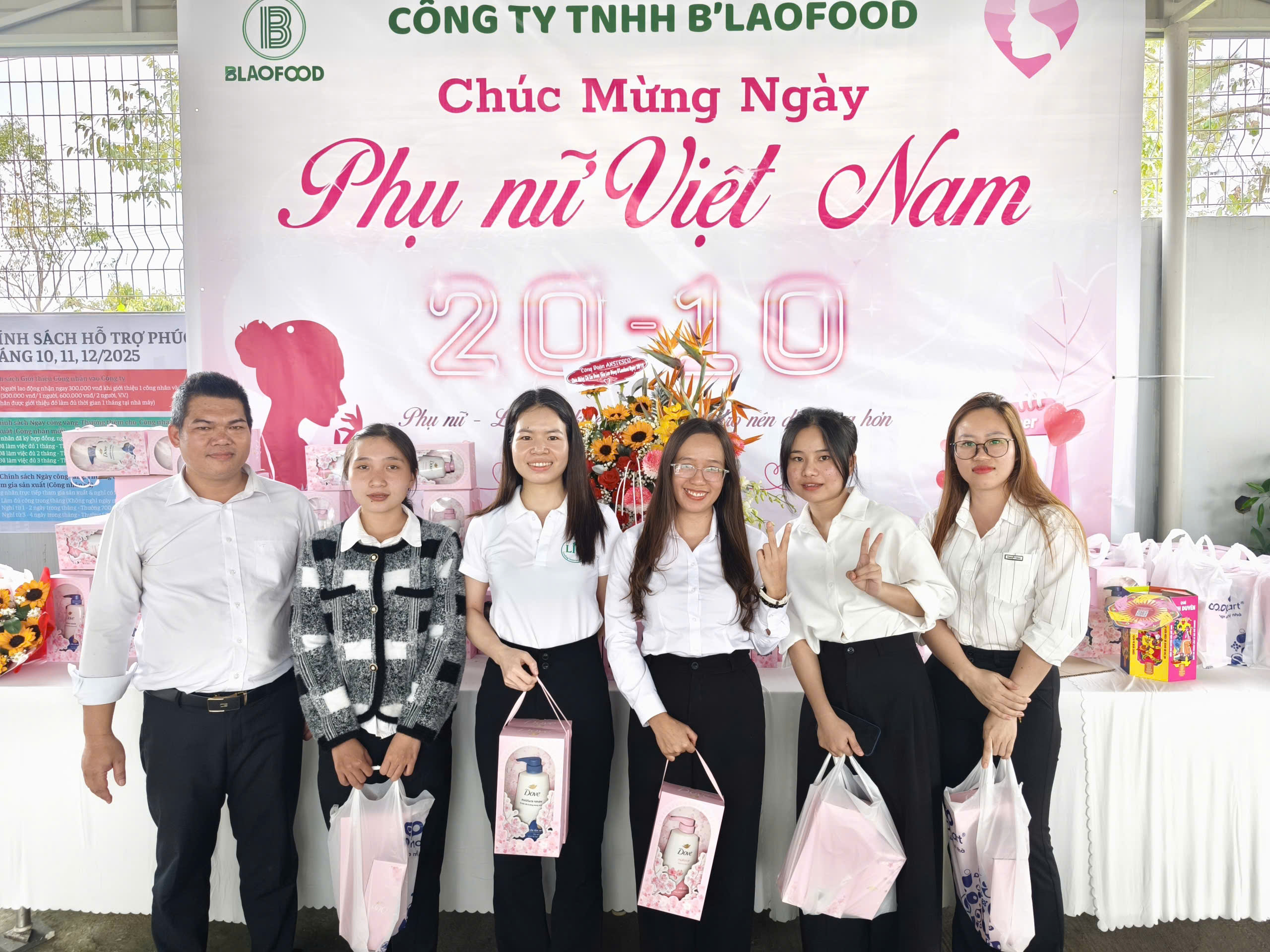 Hòa trong không khí hân hoan chào mừng Ngày Phụ nữ Việt Nam 20/10, Công ty TNHH B’Laofood đã tổ chức chương trình trao quà và giao lưu văn nghệ dành cho toàn thể nữ cán bộ, công nhân viên tại công ty. Đây là một hoạt động thường niên mang nhiều ý nghĩa, thể hiện sự quan tâm của Ban Lãnh đạo và Công đoàn đến đời sống tinh thần của người lao động – đặc biệt là những người phụ nữ đang ngày đêm cống hiến cho sự phát triển chung của B’Laofood.