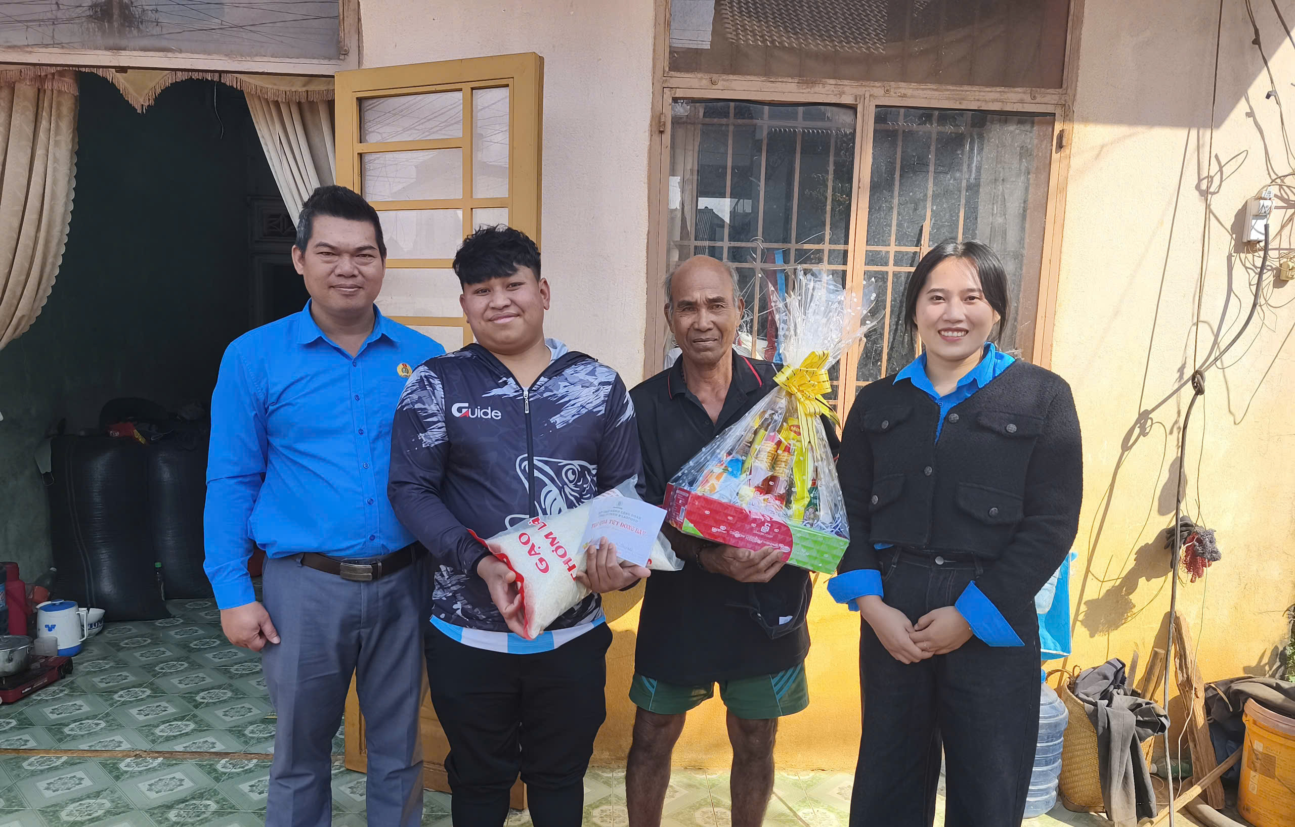 Anh Đỗ Trung Thiện - Giám đốc Công ty TNHH B'Laofood trao quà cho các bạn